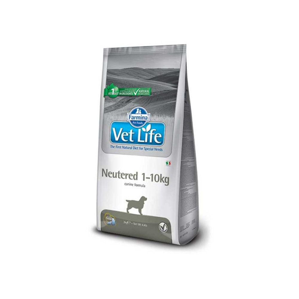 Διαχείριση στειρωμένων ενήλικων σκύλων βάρους έως και 10kg. Η Farmina Vet Life Neutered 1-10kg είναι μια πλήρης τροφή για ενήλικα στειρωμένα σκυλιά μικρόσωμων φυλών, για τον έλεγχο του βάρους.