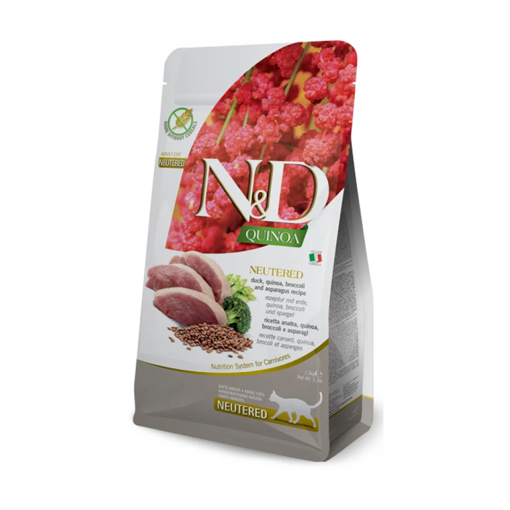 Η N&D Quinoa Neutered είναι ένα μια πλήρης τροφή για ενήλικες στειρωμένες γάτες.