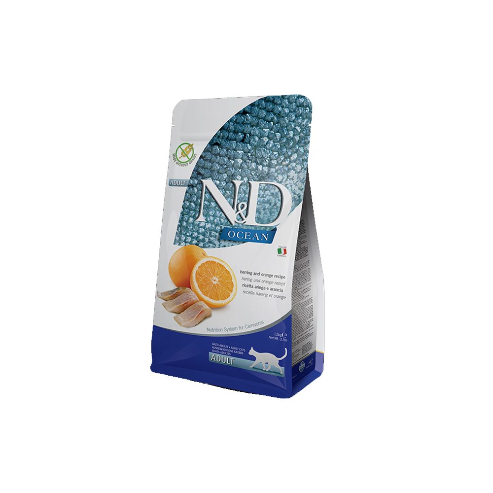 Φρέσκες ρέγγες (32%), αφυδατωμένες ρέγγες (30%), πατάτες, ιχθυέλαιο (από ρέγγα), ολόκληρα αφυδατωμένα αυγά, φυτικές ίνες μπιζελιού, αφυδατωμένα καρότα, αποξηραμένο alfalfa, ινουλίνη, φρουκτο-ολιγοσακχαρίτες, εκχύλισμα ζύμης (πηγή μαννανο-ολιγοσακχαριτών), αφυδατωμένο γλυκό πορτοκάλι (0.5%), αφυδατωμένο μήλο, αφυδατωμένο ρόδι, αφυδατωμένο σπανάκι, ψύλλιο (0.3%), αφυδατωμένα μύρτιλα, χλωριούχο νάτριο, αποξηραμένη μαγιά μπύρας, ρίζα κουρκουμά (0.2%), γλουκοζαμίνη, θειϊκή χονδροϊτίνη