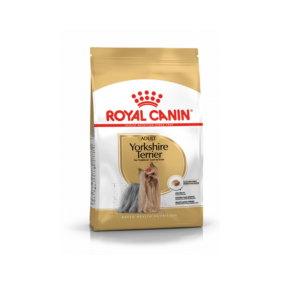 Για τους σκύλους Yorkshire Terriers ηλικίας άνω των 10 μηνών, το ROYAL CANIN® Yorkshire Terrier Adult είναι ειδικά σχεδιασμένο για τις ανάγκες τους. Περιλαμβάνει για την υποστήριξη του τριχώματος τα λιπαρά ωμέγα-6 λιπαρά οξέα (EPA & DHA), το έλαιο μποράγου και το biotin.